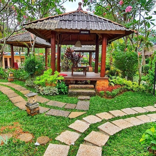 Masa PSBB dimanfaatkan untuk bersolek. Resto yang menempati areal lahan 2000 m2 ini disulap lebih cantik. “Konsep awalnya kan memang menyatu dengan alam. Kami bikin saung-saung dan banyak pepohonan dengan udara segar. Kami melakukan revamp dengan menambahkan bunga-bunga dan lampu-lampu di taman, aksesoris payung hias serta menciptakan spot yang Instagrammable. Jadi mengikuti selera kekinian,” beber Mia yang mengaku sudah memiliki pelanggan loyal dan komunitas yang kembali datang ke restoran asri ini sejak dibuka pertama kali pada 2006 silam.