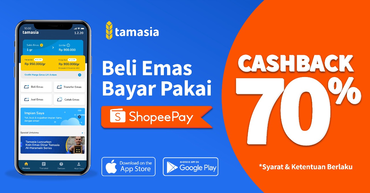 Tidak perlu khawatir harus keluar rumah untuk melakukan pembayaran, kini melakukan investasi dari rumah semakin mudah dan menguntungkan dengan tersedianya layanan pembayaran digital ShopeePay di dalam aplikasi Tamasia. Dengan partisipasi Tamasia dalam kampanye ShopeePay Super Online Deals mulai tanggal 15-21 Maret 2021, ShopeePay bersama Tamasia memberikan keuntungan lebih besar melalui promo cashback 70% yang membuat investasi emas semakin menguntungkan. Menarik bukan? (HG)