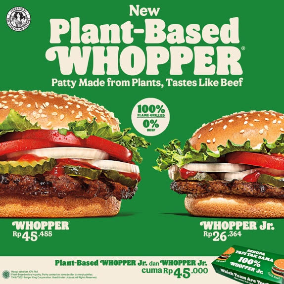 Peluncuran ini sekaligus menandai Indonesia sebagai salah satu negara pertama di Asia yang menghadirkan menu tersebut. Plant-based Whopper, yang didukung olehThe Vegetarian Butcher (unit bisnis dari Unilever), telah tersedia secara global di lebih dari 35 pasar Burger King. “Setelah sukses meluncurkan menu tersebut di pasar negara Barat dan baru-baru ini di beberapa negara Asia telah yang membuat penggemar burger di seluruh Indonesia semakin mengantisipasi hadirnya alternatif menu berbasis nabati,” ujar CEO Burger King Indonesia, Vaibhav Punj, dalam temu media daring, baru-baru ini.
