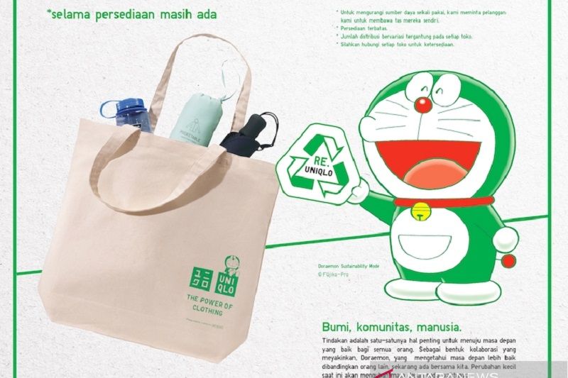 Dalam rangka mengaktifkan gairah menghijaukan bumi dari pelanggan dan meningkatkan neraca sumbangan, Uniqlo Indonesia menyempurnakan program donasi Re.Uniqlo dengan menghadirkan eco bag atau tas belanja Doraemon Sustainability Mode eksklusif yang ramah lingkungan sebagai apresiasi bagi setiap pelanggan yang telah mendonasikan pakaian Uniqlo mereka.