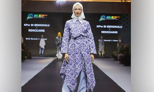Di ajang Fashion Parade hari kedua, Riri menyajikan 8 tampilan busana mengusung tekstil tradisional Bengkulu, yang dikenal dengan nama Batik Besurek.