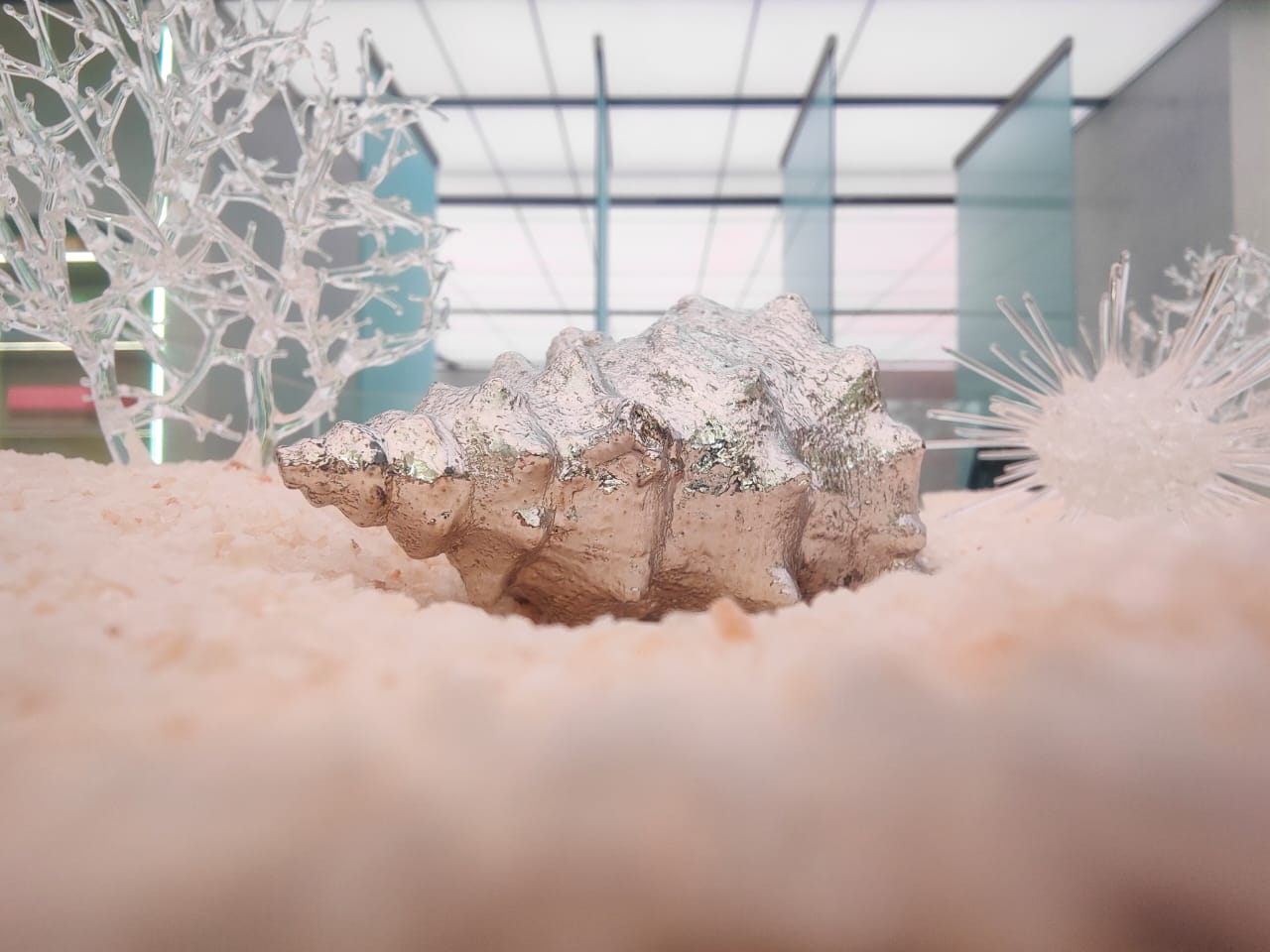 Instalasi terakhir adalah Exposea Area dengan terumbu karang dan sekumpulan ikan berwarna perak yang menarik perhatian.