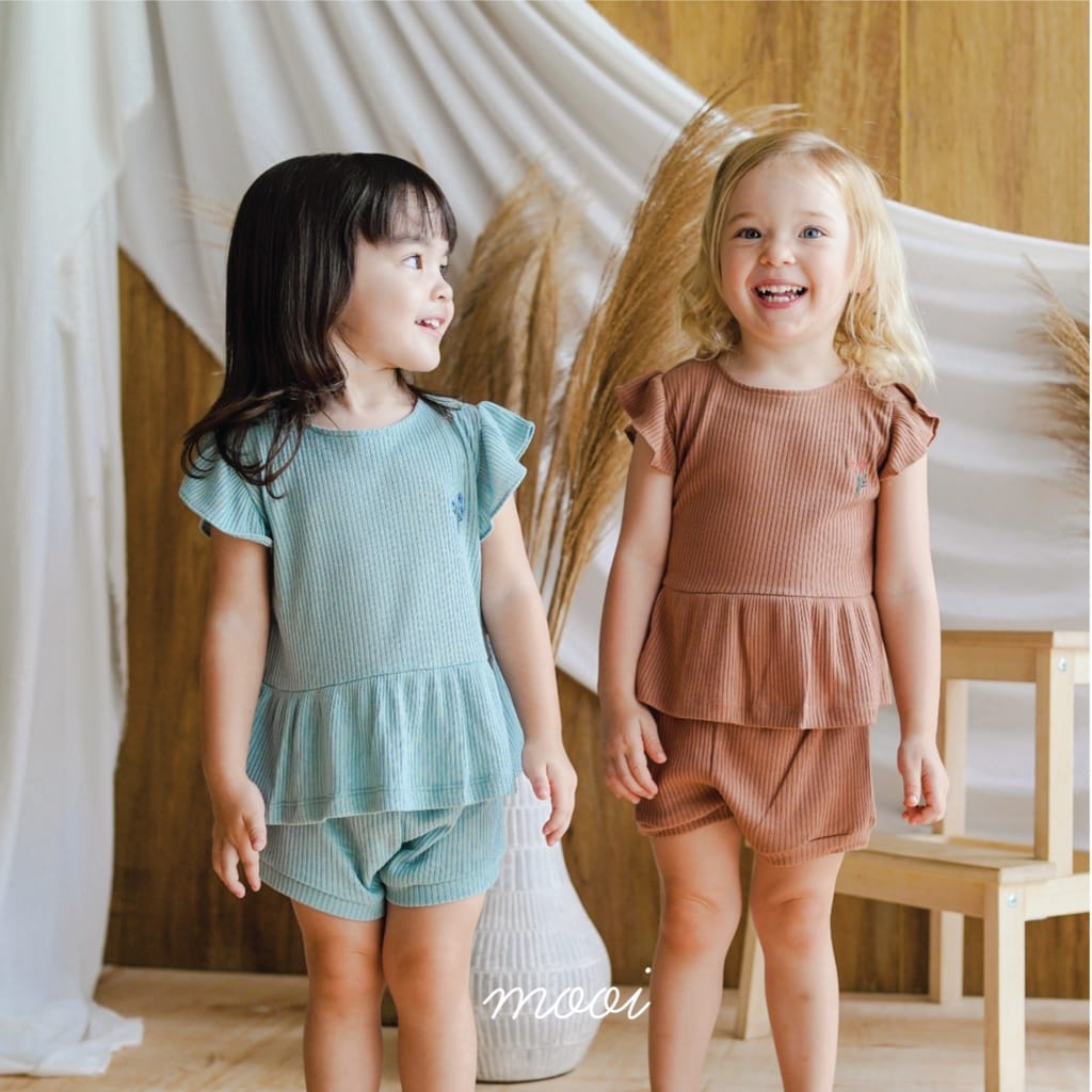 Pilih model dan motif yang menarik dan sesuai dengan karakteristik anak. Motif yang tampak lucu juga bisa dipilih agar anak semakin menggemaskan. Bagi Moms yang memiliki anak perempuan, Mooi Rib Ruffle Set bisa menjadi pilihan dengan bahan yang lembut dan stretchable akan sangat mudah dikenakan dan membuat anak leluasa bergerak.