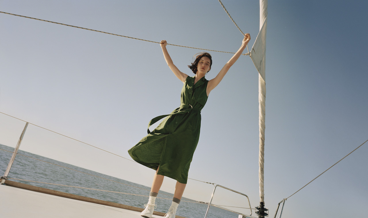 Koleksi teranyar mencakup kemeja, topi, dan kaus kaki dengan bordiran perahu layar berwarna cerah, serta gaun ikat dan jaket parka yacht yang sempurna untuk dikenakan saat bersantai di laut atau di bawah langit biru.