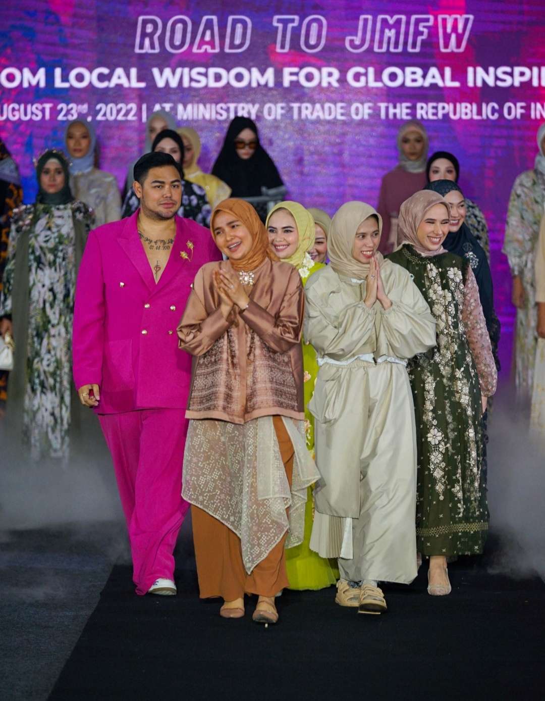 Untuk diketahui, JMFW merupakan platform yang dibentuk Kementerian Perdagangan melalui Ditjen Pengembangan Ekspor Nasional bekerja sama dengan Kamar Dagang dan Industri (Kadin) Indonesia.Hal ini menjadi salah satu bentuk komitmen Kementerian Perdagangan dalam mendorong produk fashion muslim Indonesia untuk bisa menembus pasar ekspor.