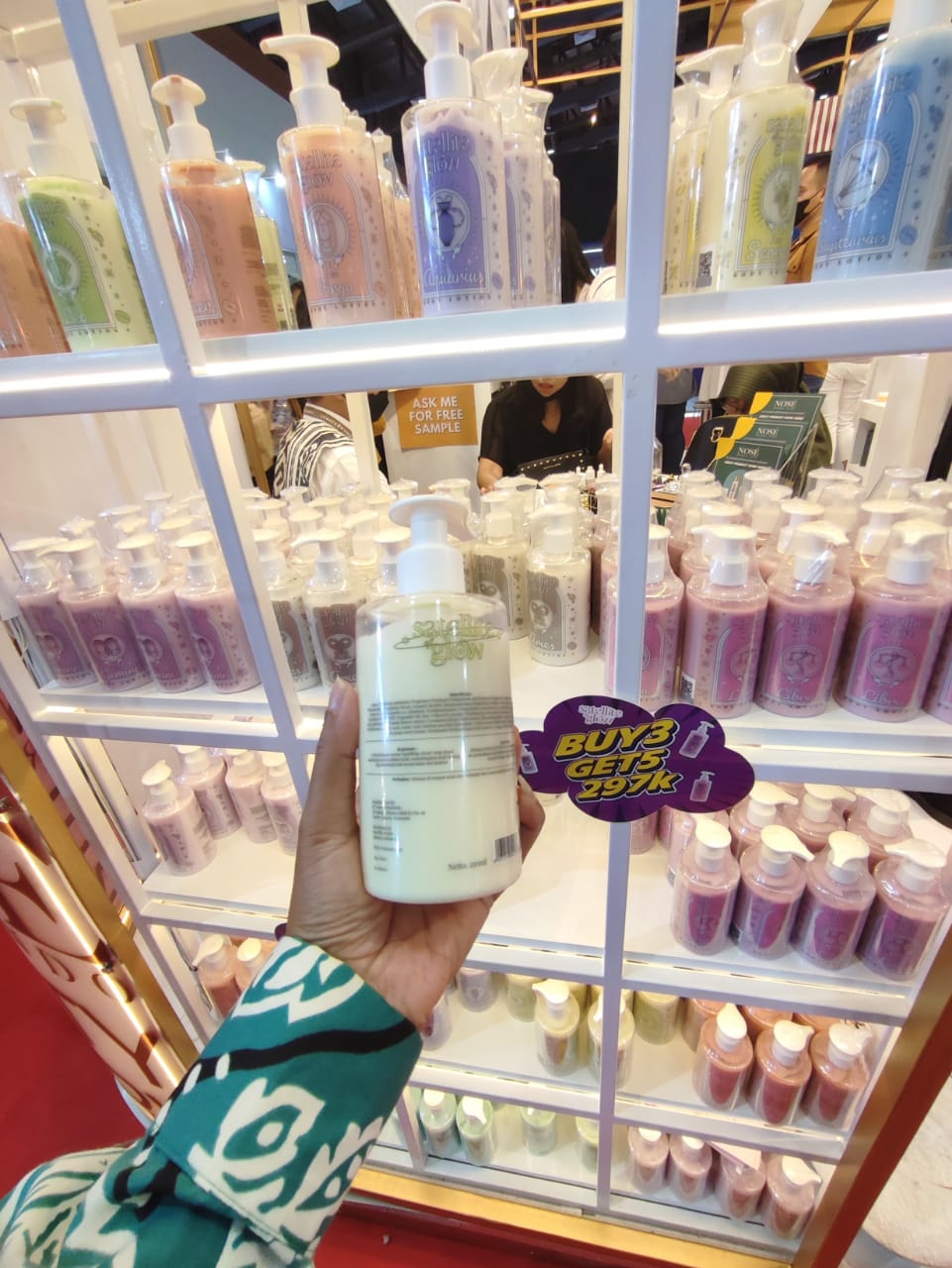 Selama pameran Cosmobeaute Indonesia 2022, Nose juga membagikan sampel produk seperti parfume, toner, facial wash, serum, moisturizer, lip serum, body lotion dan sebagainya yang bisa dicoba langsung di booth.