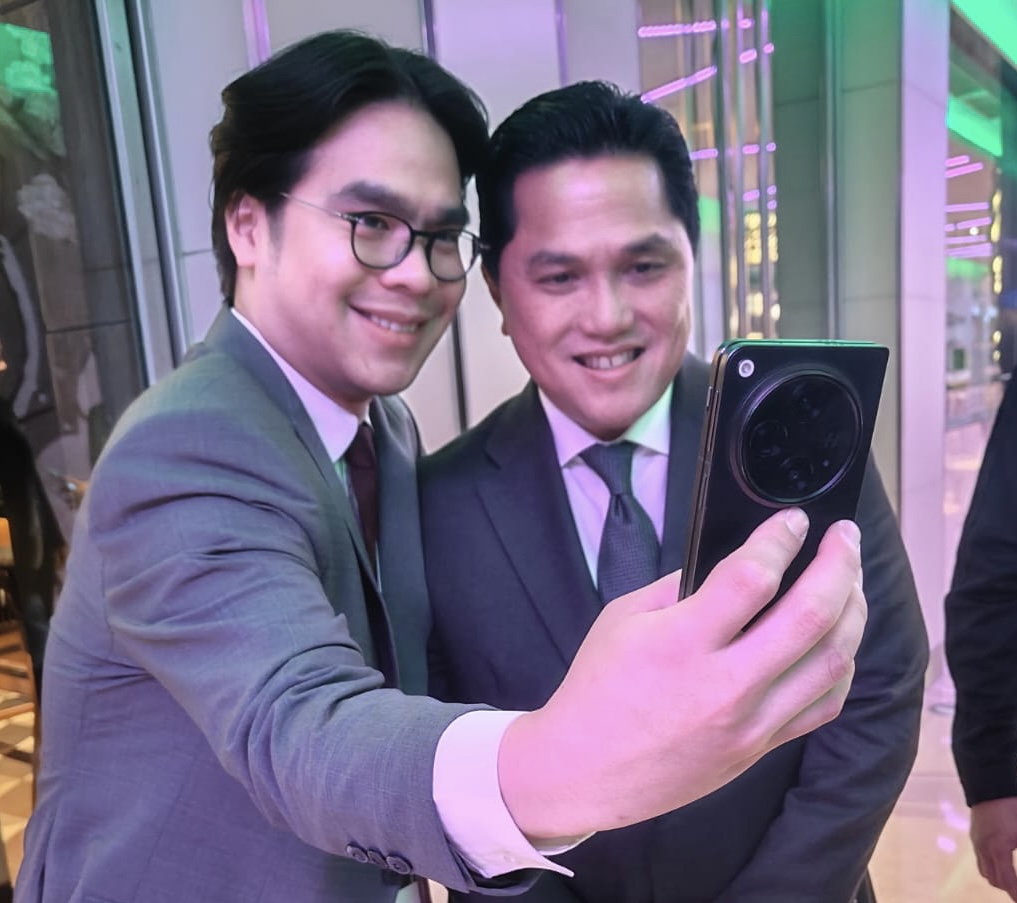 Menteri BUMN Erick Thohir berfoto bersama Patrick Owen menggunakan OPPO Find N3 Fold (dok. ist)