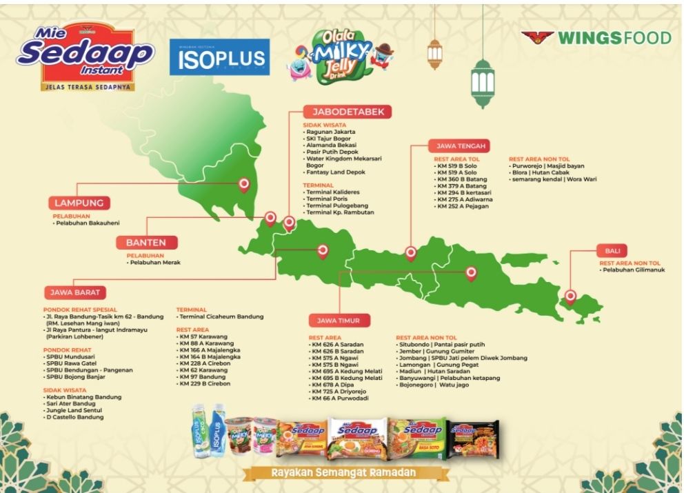“Kami membuka beberapa Pondok Rehat dan hadir di berbagai titik mudik dan lokasi wisata sebagai bagian dari komitmen Wings Food Indonesia untuk mendukung kenyamanan para pemudik serta memberikan pengalaman positif bagi para wisatawan,” ujar Marketing Manager Noodle Category Wings Group Indonesia Katria Arintya Anindyantari.