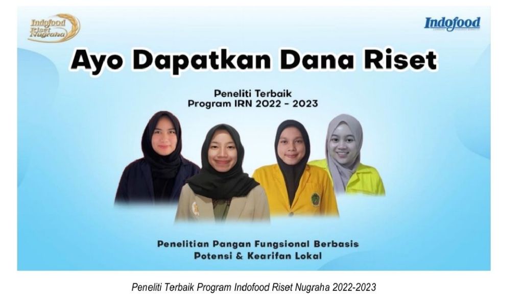 Program Indofood Riset Nugraha (IRN) 2024-2025 kembali menerima proposal penelitian dari mahasiswa-mahasiswa tingkat akhir yang akan menyelesaikan studi strata 1. Tema yang disajikan kali ini adalah ‘Penelitian Pangan Fungsional Berbasis Potensi dan Kearifan Lokal’ penerimaan proposal dibuka hingga 21 Oktober 2024.