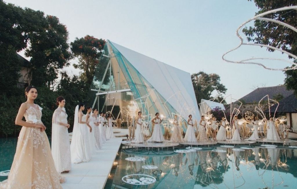Hidupgaya.co – Mengambil latar matahari terbenam yang magis di Tirtha Bali, Phangsanny, desainer yang terkenal dengan rancangan gaun pengantin, menggelar pergelaran busana solo bertema ‘Le Jardin Poétique’ di Uluwatu.