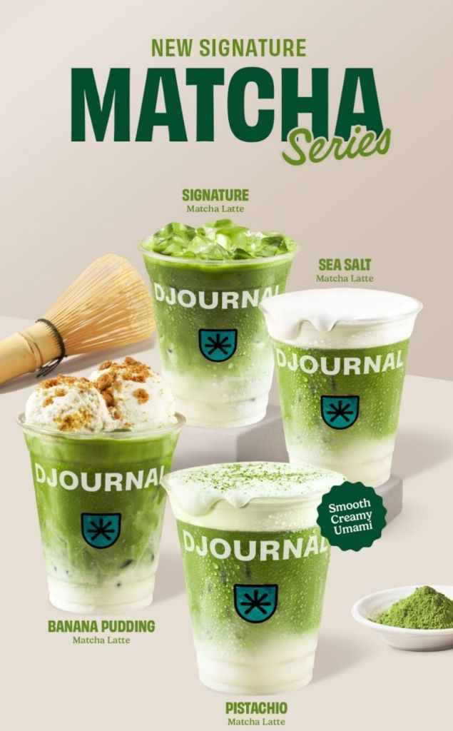 Signature Matcha Series tersedia mulai 1 Mei hingga 31 Juli 2025 di seluruh gerai Djournal, kecuali Djournal To Go MRT, Djournal To Go MSIG, dan Djournal Pasaraya Blok M. Harga berkisar antara Rp55.000 hingga Rp69.000. (HG)