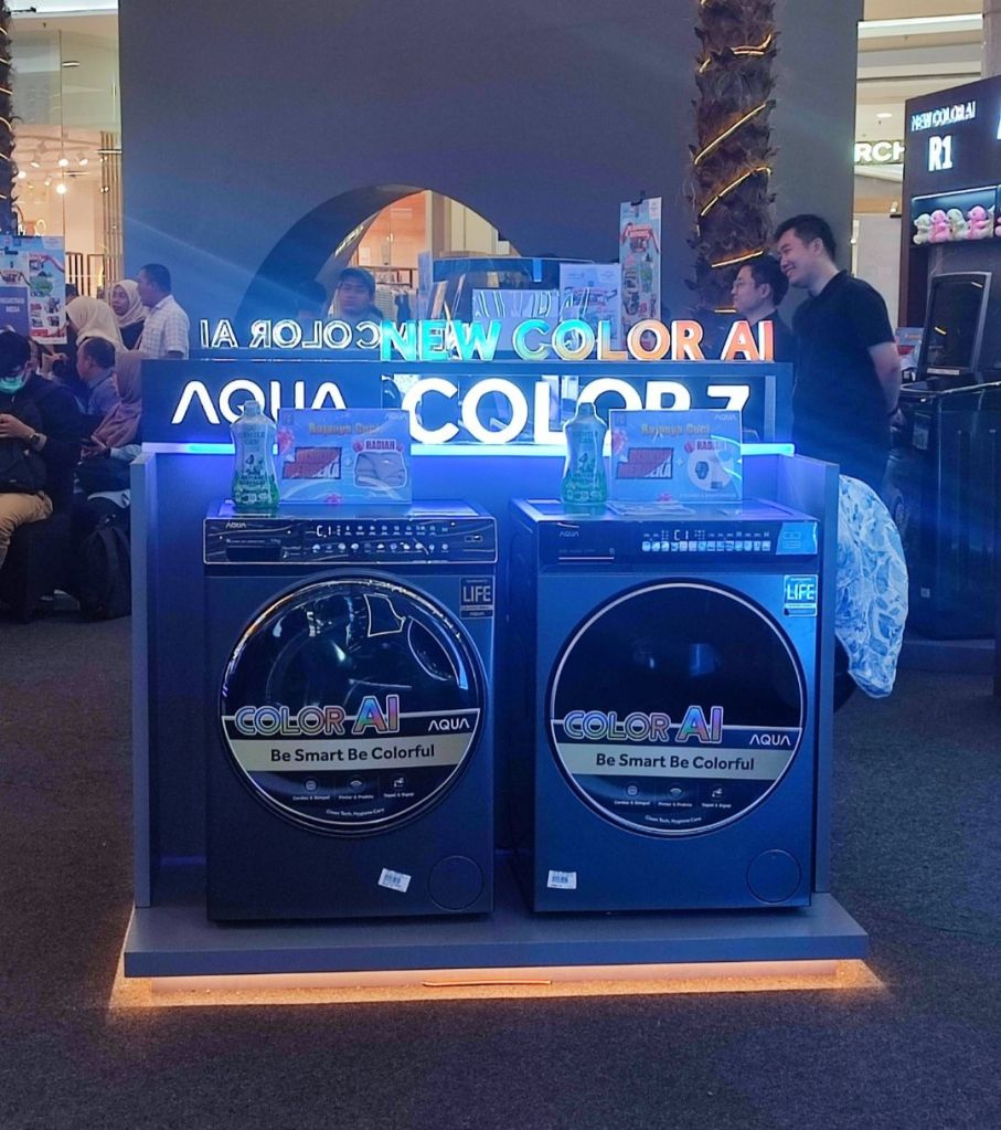 Mesin cuci New Color Ai yang terdiri dari mesin cuci Front Load Color 7 series dengan teknologi Color Screen Panel dan Essence Wash, serta Top Load R1 series dengan fitur Double Drive, satu-satunya teknologi yang hanya dimiliki oleh mesin cuci AQUA Elektronik.